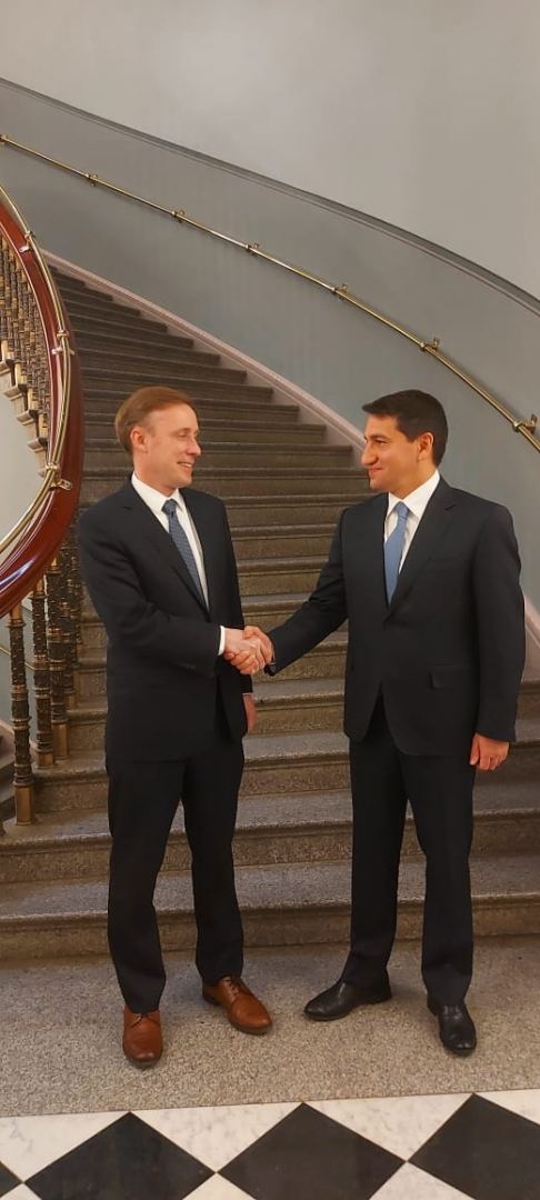Помощник президента Азербайджана - заведующий отделом по вопросам внешней политики Администрации главы государства Хикмет Гаджиев встретился в Вашингтоне с советником президента США по вопросам безопасности Джейком Салливаном.