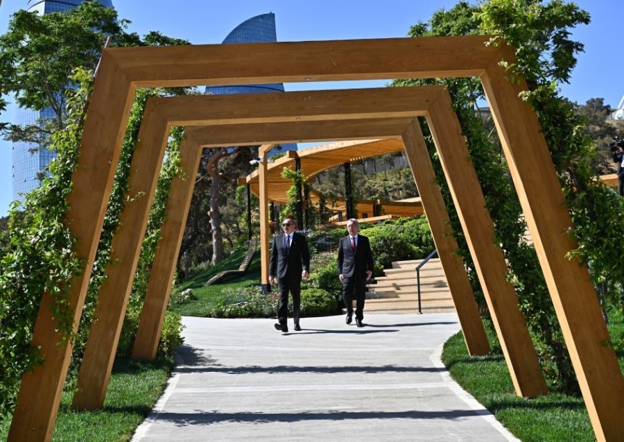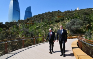 Президент Ильхам Алиев полюбовался из нового парка панорамой столицы.