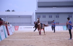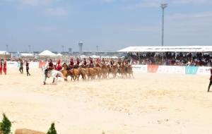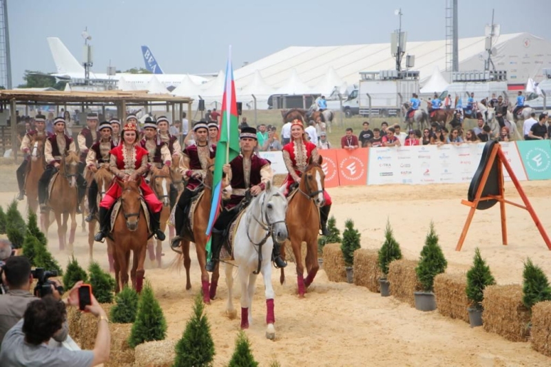 Специальная шоу-композиция, продемонстрированная в день открытия фестиваля азербайджанскими участниками на карабахских скакунах, отличающихся удивительной красотой и являющихся важной частью древней истории, богатой культуры Азербайджана, была встречена зрителями с большим восхищением и бурными аплодисментами.