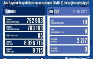 На сегодня в Азербайджане выявлены в целом 792 903 случая заражения коронавирусной инфекцией, 783 103 человека вылечились, 9 715 – скончались, число активных больных составляет 85.