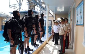 В заключение на полигоне, находящемся на территории воинской части, были представлены показательные выступления водолазов подразделений подводной атаки и подводной обороны.