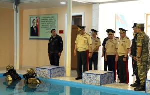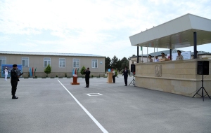 Сначала министр обороны и личный состав возложили цветы к мемориалу, воздвигнутому на территории воинской части в честь шехидов, почтили их светлую память.