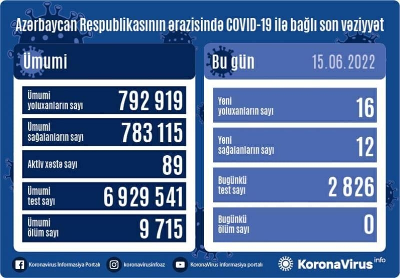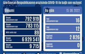 На сегодня в Азербайджане выявлены в целом 792 919 случаев заражения коронавирусной инфекцией, 783 115 человек вылечились, 9 715 – скончались, число активных больных составляет 89.