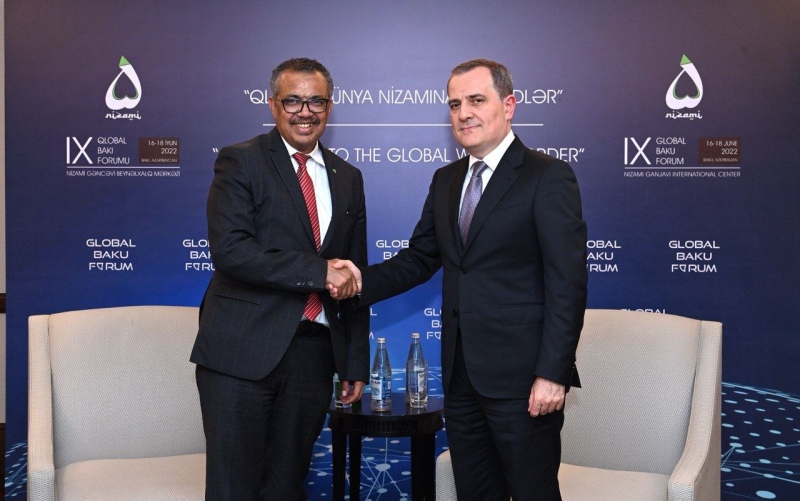16 июня министр иностранных дел Азербайджана Джейхун Байрамов встретился с генеральным директором Всемирной организации здравоохранения (ВОЗ) Тедросом Гебрейесусом в рамках его участия в IX Бакинском Глобальном форуме.