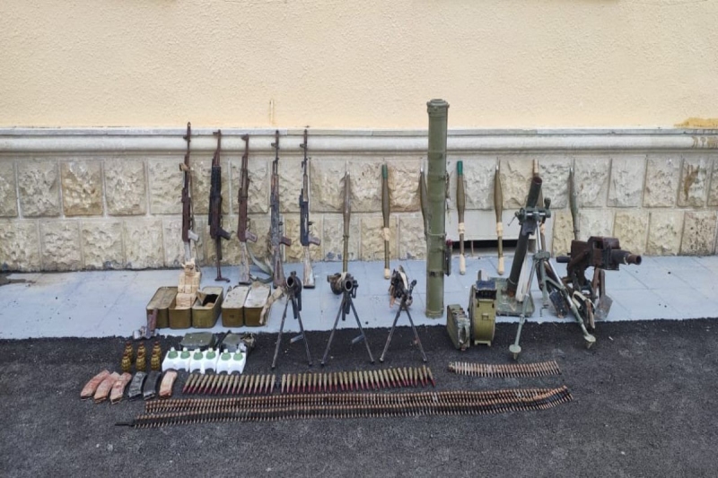 Обнаруженные пять автоматов, три гранатомета, пулемет, пистолет, миномет, противотанковый ракетный комплекс, 44 гранаты, семь снарядов, 2 959 патронов различного калибра и другие боеприпасы переданы соответствующим органам, говорится в сообщении.