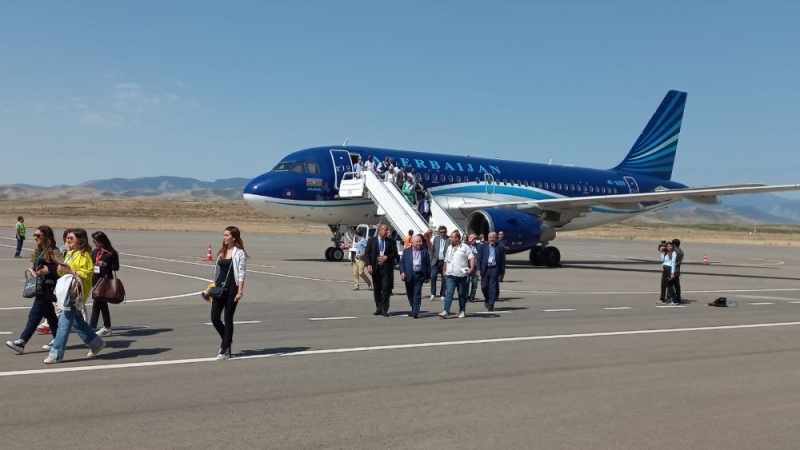 Делегация ознакомилась с Физулинским международным аэропортом, осмотрела руины города Физули, освобожденного от армянской оккупации.