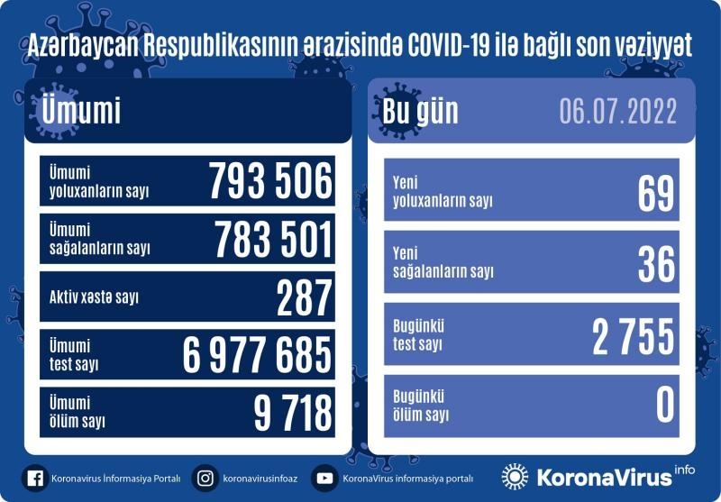 В Азербайджане за последние сутки выявлено 69 случаев заражения коронавирусом, вылечились 36 человек, сообщает Оперативный штаб при Кабмине.
