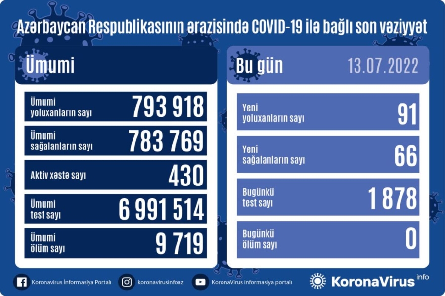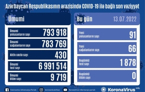 На сегодня в Азербайджане выявлены в целом 793 918 случаев заражения коронавирусной инфекцией, 783 769 человек вылечились, 9 719 – скончались, число активных больных составляет 430.