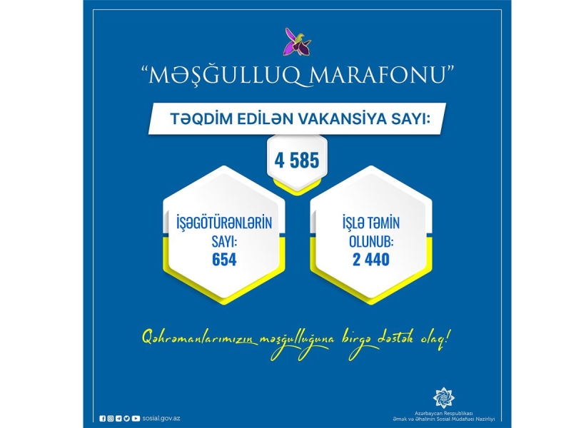 Как сообщили в ведомстве, в рамках этой акции, направленной на поддержку занятости членов семей шехидов и ветеранов, получивших ранения во время Отечественной войны, было представлено 4 585 вакансий.