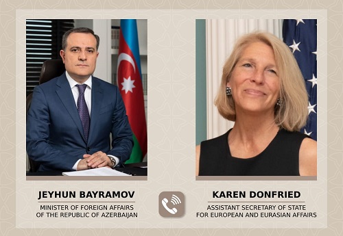 Ситуацию в регионе, в том числе процесс нормализации отношений между Азербайджаном и Арменией, обсудили в ходе телефонного разговора в воскресенье министр иностранных дел Азербайджана Джейхун Байрамов и помощник госсекретаря США по делам Европы и Евразии Карен Донфрид, сообщили в МИД Азербайджана.