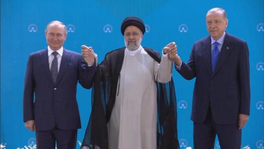 Президент РФ Владимир Путин, президент Ирана Эбрахим Раиси и президент Турции Реджеп Тайип Эрдоган по итогам саммита в "астанинском формате" приняли совместное заявление.
