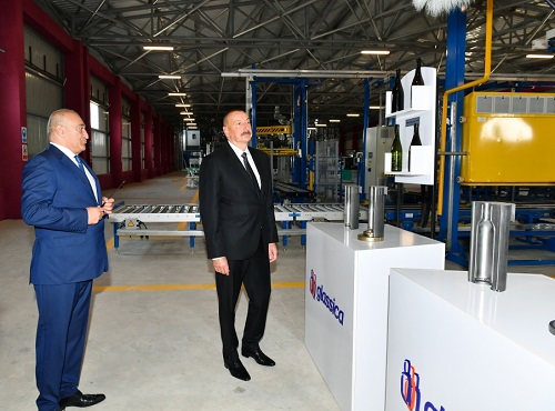 Президент Азербайджана Ильхам Алиев в среду принял участие в церемонии открытия предприятия по производству стеклянной тары ЗАО Glassica в Сумгайытском химическом промышленном парке (СХПП).