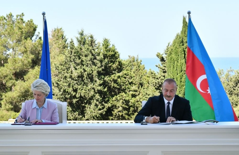 Документ подписали Ппезидент Азербайджанской Республики Ильхам Алиев и президент Европейской комиссии Урсула фон дер Ляйен.