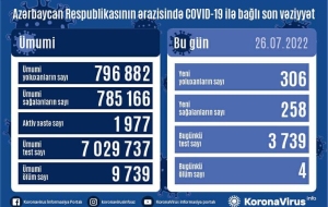 На сегодня в Азербайджане выявлены в целом 796 882 случая заражения коронавирусной инфекцией, 785 166 человек вылечились, 9 739 – скончались, число активных больных составляет 1977.