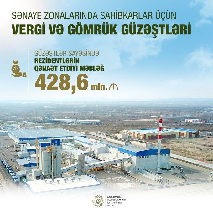 В публикации министра говорится, что для резидентов промышленных зон Азербайджана применяется ряд налоговых и таможенных льгот.