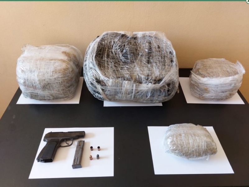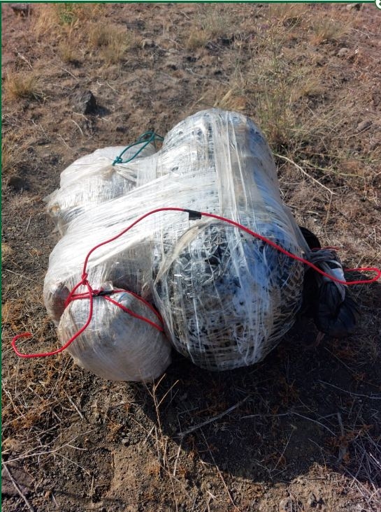 В результате поисковых работ, проведенных на местности, были обнаружены и изъяты сверток с 7 килограммами 935 граммами наркотического вещества (марихуана), один пистолет и патроны.