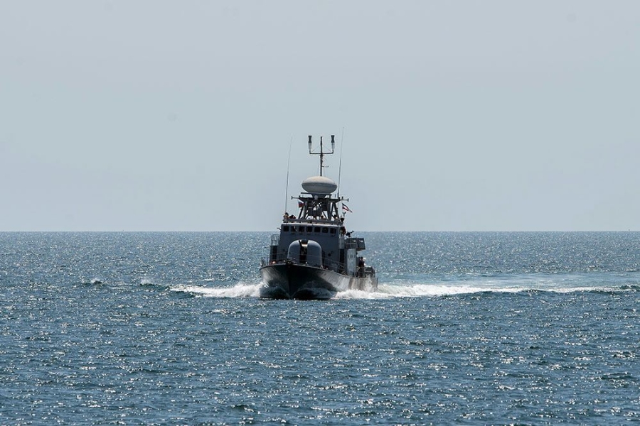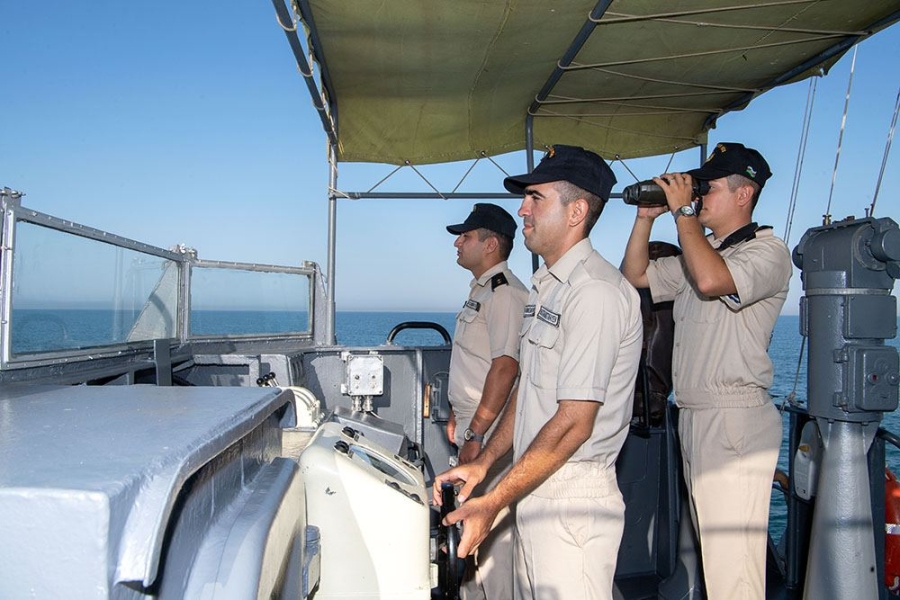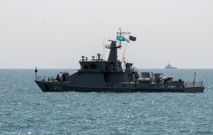 На конкурсе "Кубок моря", проводимом в рамках "Армейских международных игр-2022", команды Азербайджана, Ирана, Казахстана и России выполнили на полигоне боевой подготовки задание "Стрельба по плавучей мине".