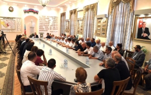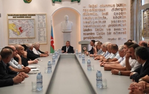 Как сообщили в госкомитете, сначала минутой молчания была почтена память шехидов, отдавших свои жизни за освобождение земель страны от оккупации. На встрече был решительно осужден вандализм армян, которые покидая населенные пункты Лачина, где они незаконно расселились, поджигают дома и леса.