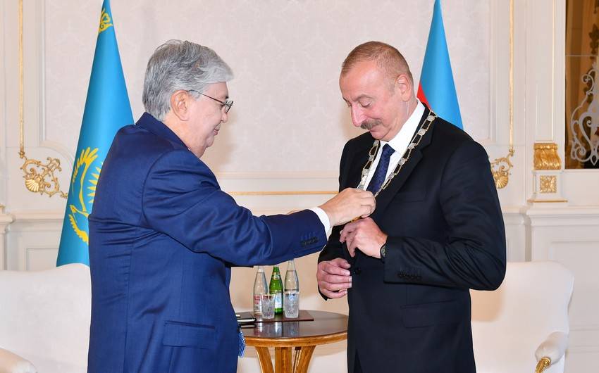 24 августа президент Казахстана Касым-Жомарт Токаев вручил президенту Азербайджана Ильхаму Алиеву высший орден Казахстана "Алтын кыран" - "Золотой орел" за особый вклад в укрепление и развитие двусторонних политических, экономических и культурных отношений между Республикой Казахстан и Азербайджанской Республикой.