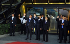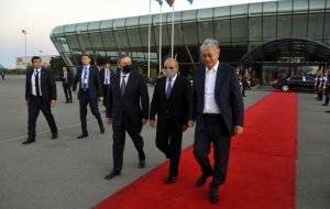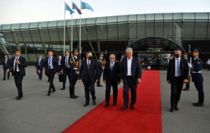 Как сообщает Trend, в Международном аэропорту Гейдар Алиев, где развевались государственные флаги двух стран, в честь высокого гостя был выстроен почетный караул.