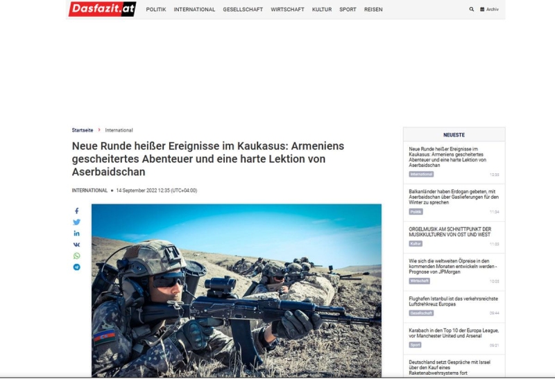 Австрийская онлайн-газета dasfazit.at опубликовала статью об успешно проведенной азербайджанской армией операции по предотвращению провокации армянских вооруженных сил.