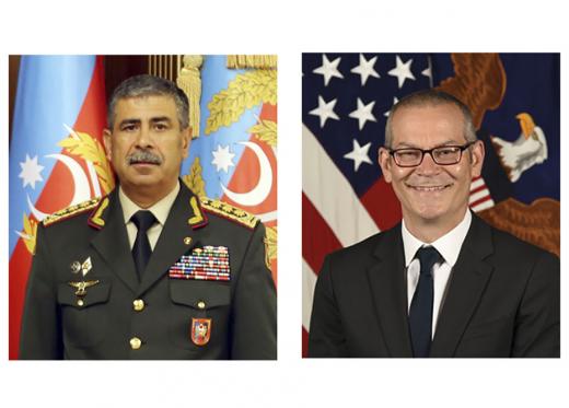 Министр обороны Азербайджана Закир Гасанов и заместитель министра обороны США Колин Каль провели в четверг телефонный разговор, обсудив двустороннее сотрудничество и ситуацию на азербайджано-армянской границе. Об этом сообщает министерство обороны Азербайджана.