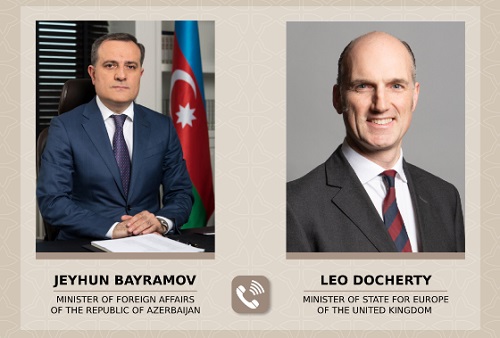 Министр иностранных дел Азербайджана Джейхун Байрамов и государственный министр Великобритании по делам Европы Лео Докерти обсудили в ходе телефонного разговора в субботу ситуацию на азербайджано-армянской границе, сообщили в МИД Азербайджана.