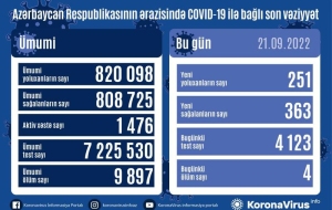 В Азербайджане за последние сутки выявлен 251 случай заражения коронавирусом, 363 человека вылечились, 4 - скончались, передает в среду Оперативный штаб при Кабмине.