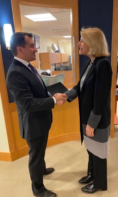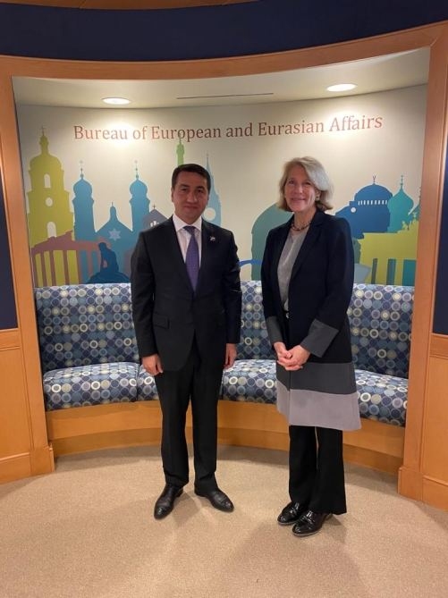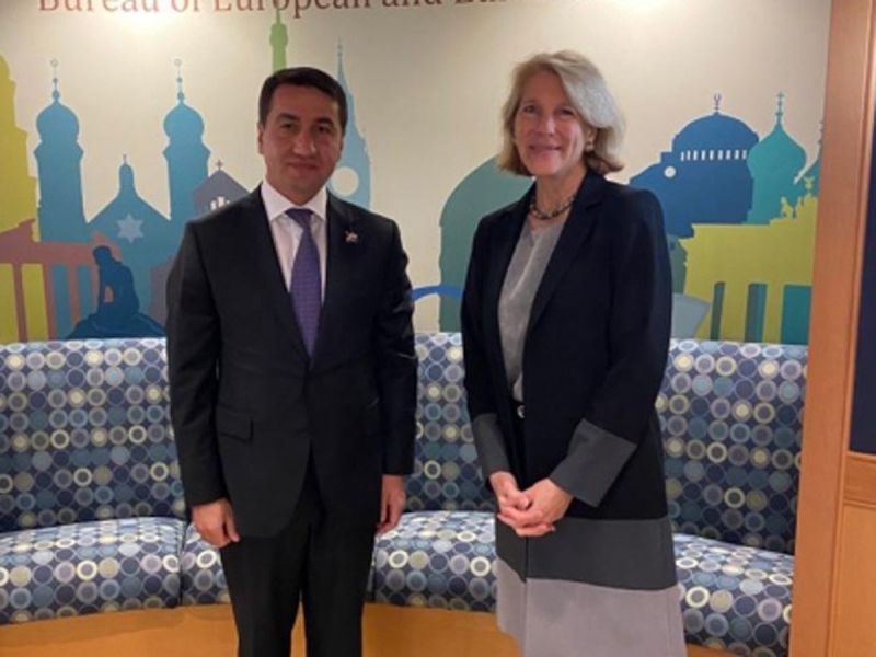 Помощник Президента Азербайджана - заведующий отделом по вопросам внешней политики Администрации Президента Хикмет Гаджиев встретился с помощником госсекретаря США по вопросам Европы и Евразии Карен Донфрид.