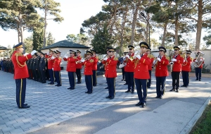 В сопровождении военного оркестра был исполнен Государственный гимн Азербайджанской Республики.