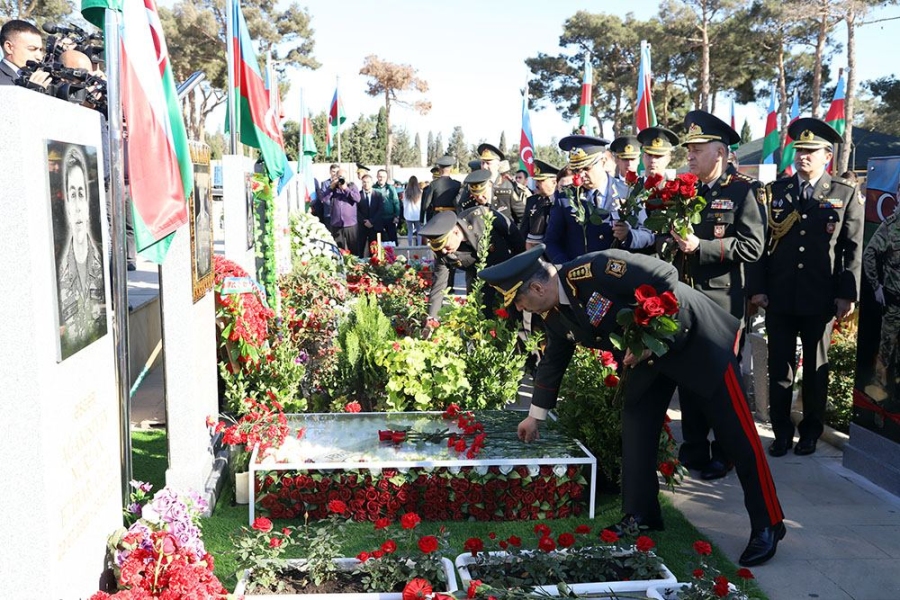 Сначала были возложены цветы к памятнику общенациональному лидеру азербайджанского народа Гейдару Алиеву, почтена его светлая память. Затем руководство министерства обороны посетило Вторую Аллею шехидов.