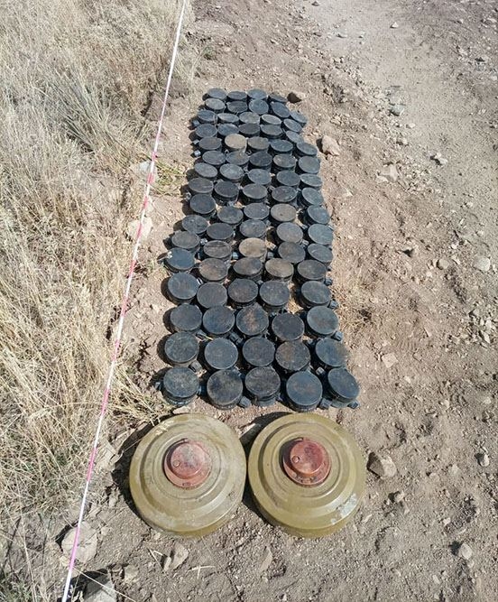 Как отмечается, на территории Кяльбаджарского района было обезврежено с соблюдением мер безопасности 79 противопехотных мин типа ПМН-Э, 2 противотанковые мины типа ТМ-62М, а на территории Дашкесанского района - 53 противопехотные мины типа ПМН-Э и 4 противопехотные осколочные мины типа ОЗМ-72.