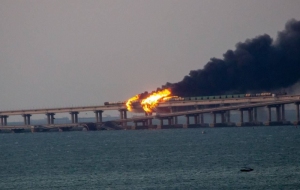 Подрыв грузового автомобиля произошел на Крымском мосту, он привел к возгоранию семи топливных цистерн железнодорожного состава.