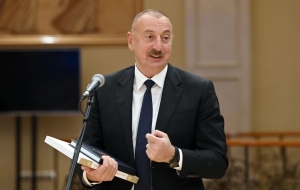 Президент Ильхам Алиев: Книга о кыргызах на азербайджанском языке. Эта книга тоже достойна уважения, потому что мы должны знать друг друга через свои языки, через азербайджанский, через кыргызский, которые имеют общие корни, и гордиться общей историей, гордиться историей друг друга и, как мы договорились сегодня, делать все от нас зависящее, чтобы сближать наши страны и народы. Спасибо еще раз.