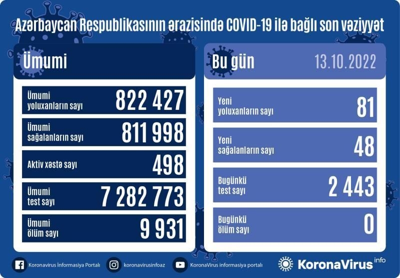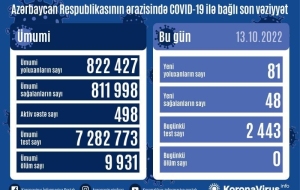 На сегодня в Азербайджане выявлены в целом 822 427 случаев заражения коронавирусной инфекцией, 811 998 человек вылечились, 9 931 скончались, число активных больных составляет 498.