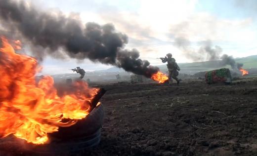 "По сценарию учений, были выведены из строя пункты командного управления, узлы связи условного противника, нейтрализована живая сила, укрывавшаяся на объектах инфраструктуры в населенных пунктах. В ходе учений мобильные группы, преодолев возникшие на пути препятствия, совершили внезапный огневой налет на условные цели", - говорится в сообщении Минобороны Азербайджана.