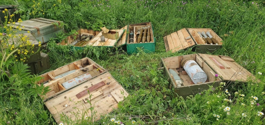 В лесу в селе Туг сотрудниками Ходжавендского районного управления полиции обнаружены взрывные устройства, принадлежащие армянским военным и остававшиеся там со времен недавней войны.