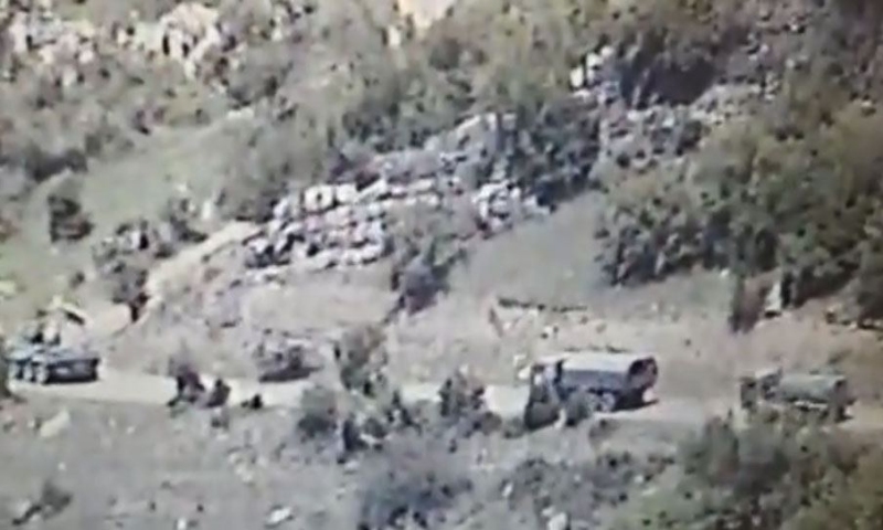 На кадрах, которые представляет вниманию читателей Trend, видно, как в очередной раз посредством дороги Ханкенди-Кяркиджахан-Халфали в сопровождении бронетехники миротворцев осуществляются военные перевозки на боевые позиции незаконных армянских вооруженных формирований.