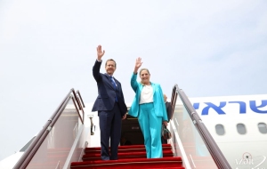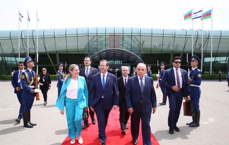 Президента Израиля Ицхака Герцога и его супругу Михаль Герцог провожали первый заместитель премьер-министра Азербайджана Ягуб Эйюбов, заместитель министра иностранных дел Фариз Рзаев и другие официальные лица.