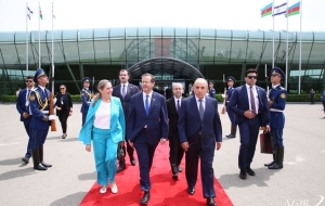 Как сообщает Trend, в Международном аэропорту Гейдар Алиев, где развевались государственные флаги обеих стран, в честь высокого гостя был выстроен почетный караул.