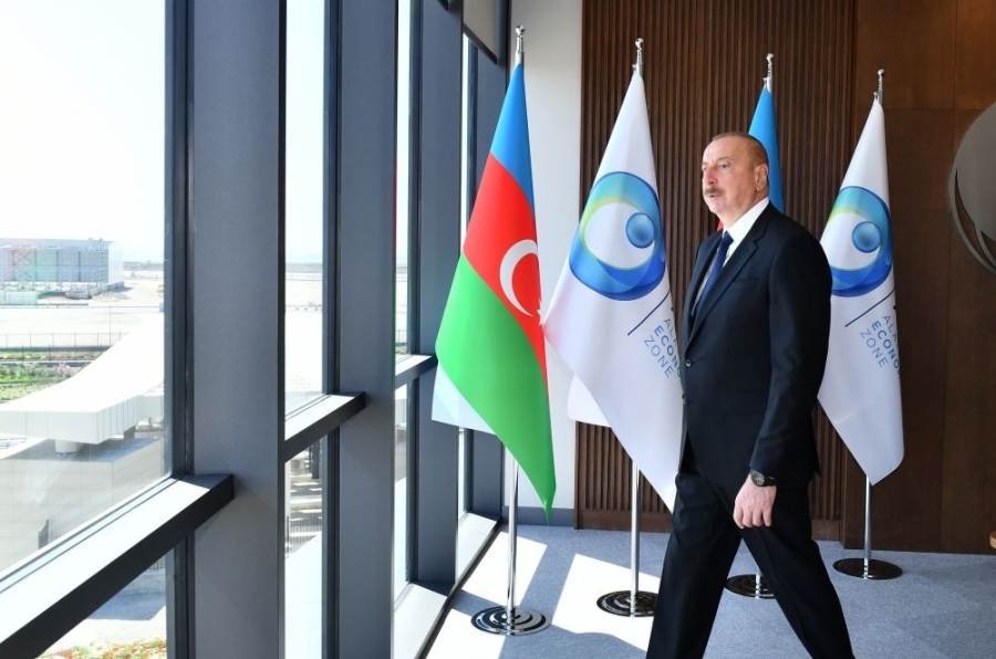 Президент Азербайджана Ильхам Алиев принял участие в церемонии открытия первого этапа Алятской свободной экономической зоны.