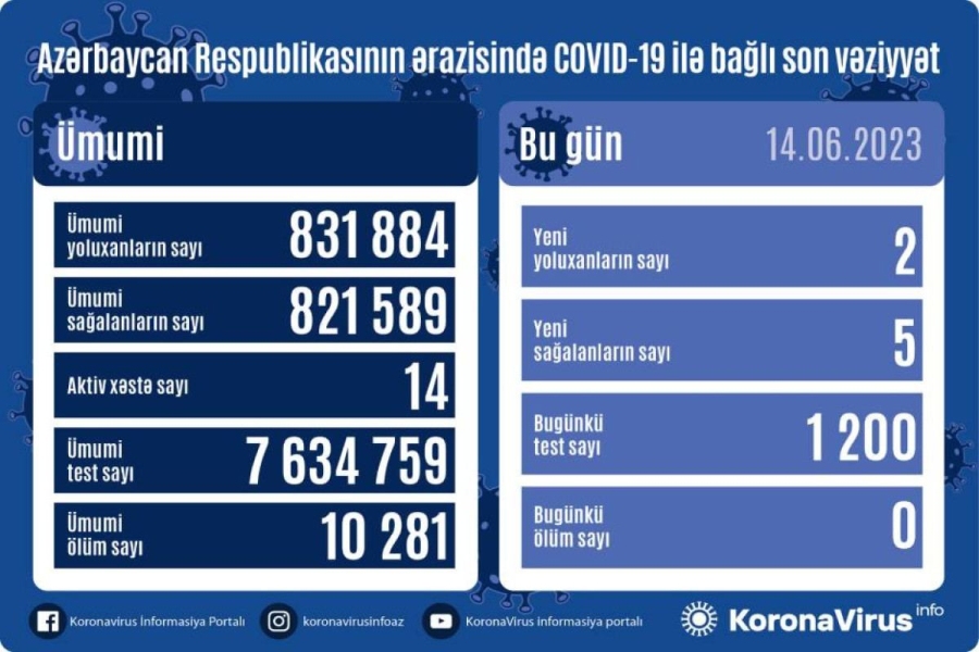 На сегодня в Азербайджане выявлены в целом 831 884 случая заражения коронавирусной инфекцией, 821 589 человек вылечились, 10 281 – скончались, число активных больных составляет 14.