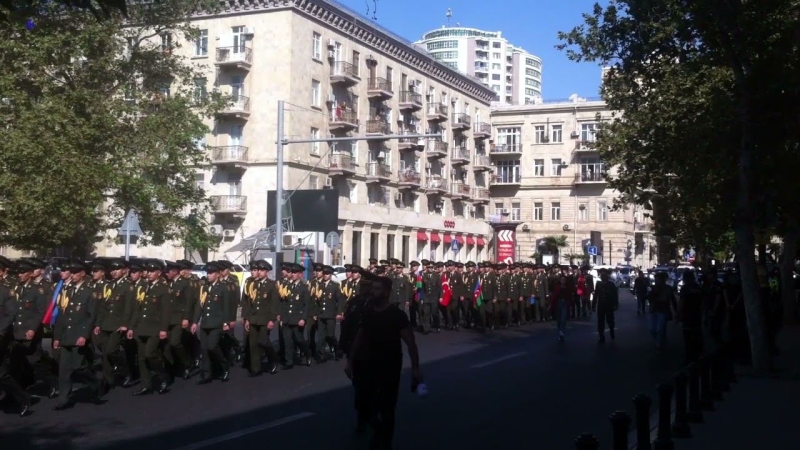 По этому случаю на центральных улицах Баку в сопровождении военного оркестра состоялся парад курсантов военного лицея имени Джамшида Нахчыванского.