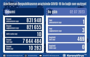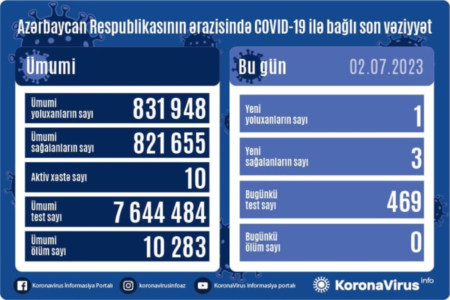На сегодня в Азербайджане выявленыj в целом 831 948 случаев заражения коронавирусной инфекцией, 821 655 человек вылечились, 10 283 – скончались, число активных больных составляет 10.